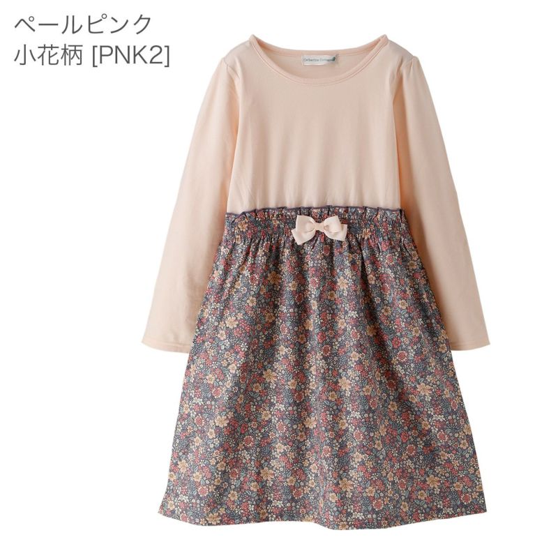 花柄プリントドッキングワンピース(ペールピンク) 110~150cm