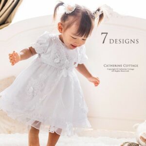 お顔まわりもパッと華やぐ、バラチュールをたっぷり身頃にあしらったベビードレスなら、その上品かわいらしさに喜んでもらえること間違いなし!