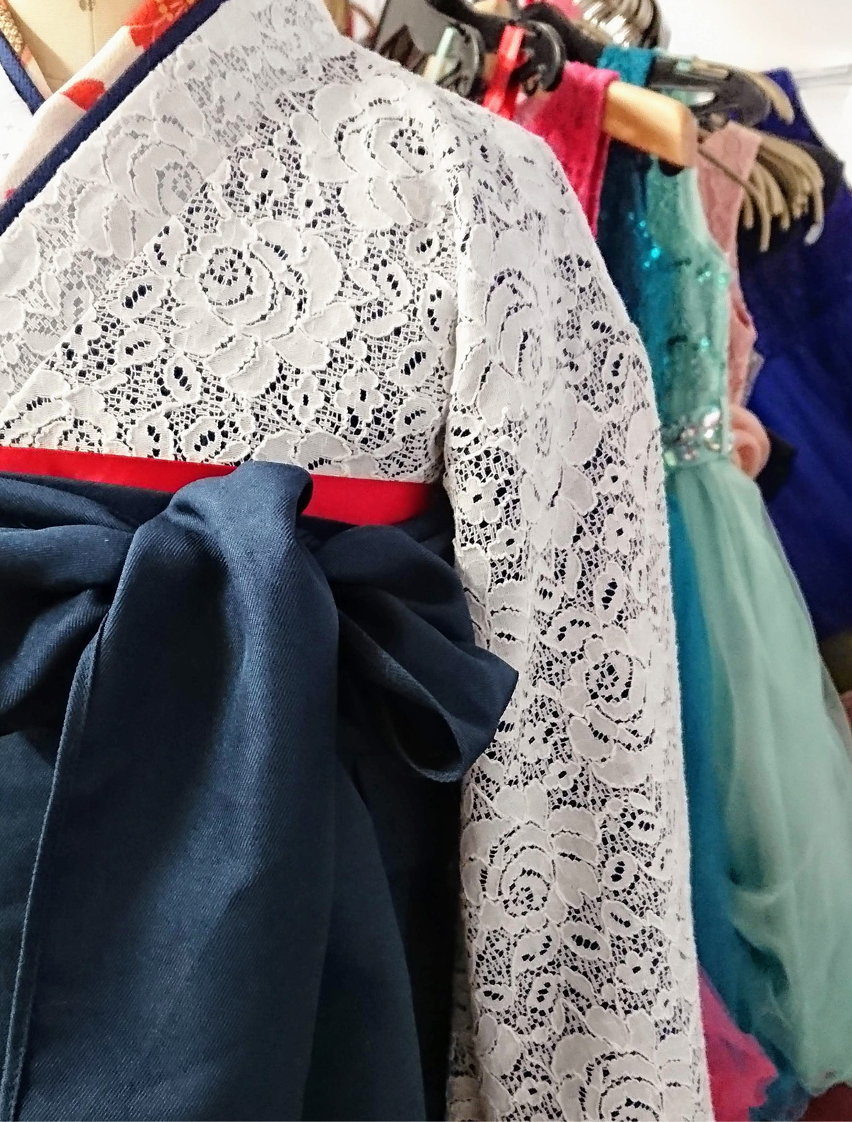 また、ドレスショップならではの感性で、レース生地の新作袴を企画進行中! サンプルを見ましたが、バラエティーに富んだ柄が艶やかな中、レースの着物というのは、和洋折衷いいとこどりなニュアンスでなかなか斬新で素敵な佇まいです!